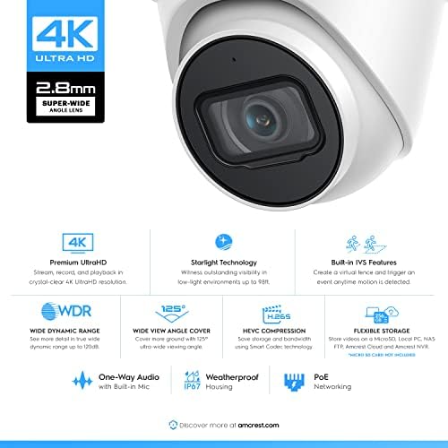 Introducing the Amcrest UltraHD 4K (8MP) Outdoor Security IP Turret PoE Camera, a cutting-edge surveillance solution designed to provide unrivaled clarity and protection for your property. With its advanced features and exceptional image quality, this camera ensures every detail is captured, giving you peace of mind and security like never before.