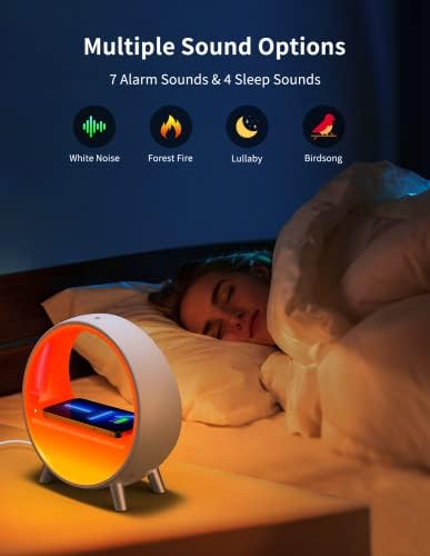 Experience a variety of light modes to personalize your ambiance. Choose from 9 different light modes ranging from warm white to vibrant colors, allowing you to create the perfect lighting to suit your mood. Whether you’re reading a book, preparing for bed, or simply need a soothing glow, this alarm clock provides the ideal lighting solution for every moment.